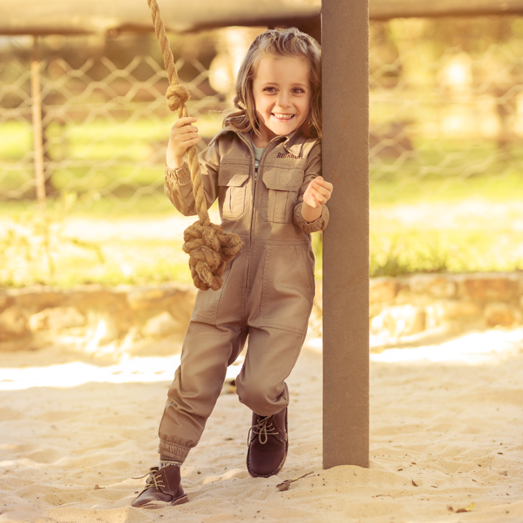 Let your little one enjoy every adventure in the classic Boerboel Wear Kids Overall – Putty. Crafted from a durable polyester/cotton blend, this overall combines comfort with functionality. Perfect for outdoor play, it features multiple pockets, an elasticated waist, and a YKK front zip for easy dressing. The Boerboel logo is proudly embroidered on both the front and back.