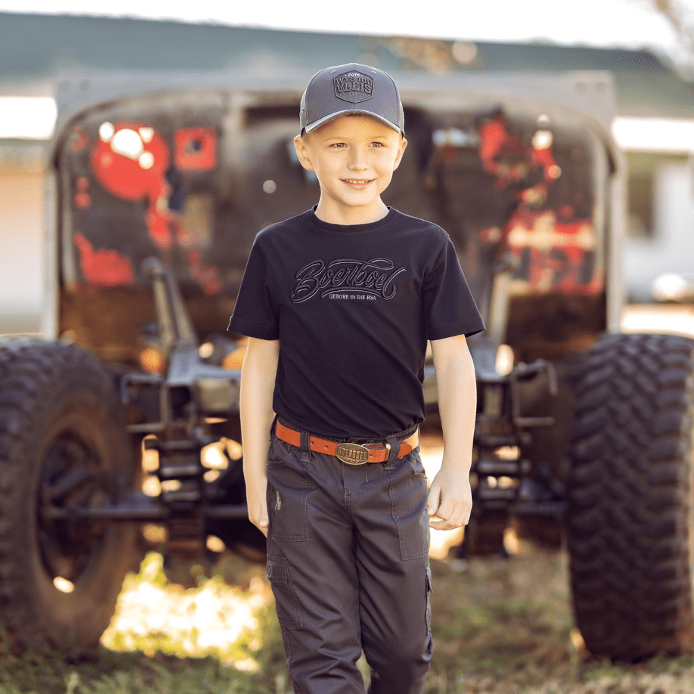 Let your child enjoy every adventure with the Boerboel Wear Kids Cap Charcoal – “Wys Jou Vleis”. This lightweight Kalahari-style cap is designed for fun in the sun, offering comfort, breathability and a secure fit. Made from 100% enzyme-washed cotton twill, it feels soft, cool and gentle, even during active play.