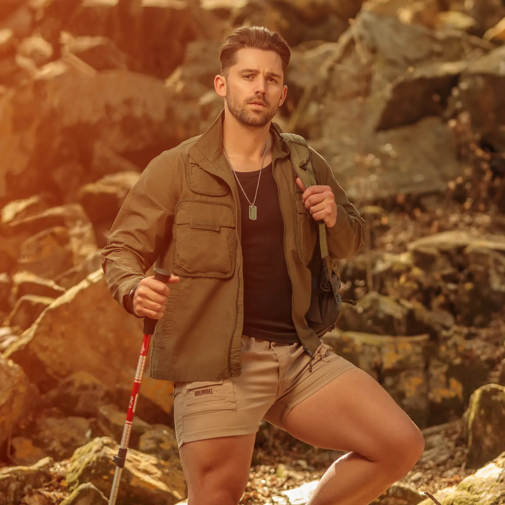 Conquer the outdoors in style with the Boerboel Wear Mens Kalahari Jacket – Olive. Crafted from durable cotton ripstop stretch fabric, this lightweight jacket delivers superior tear resistance and freedom of movement. Features a raised collar, military-inspired design, and multiple pockets including three deep front pockets with flap closures. Distinctive piping detail and tone-on-tone embroidery add refined style. Perfect for hiking, biking, or everyday adventures. Breathable, comfortable, and built for unpredictable weather.