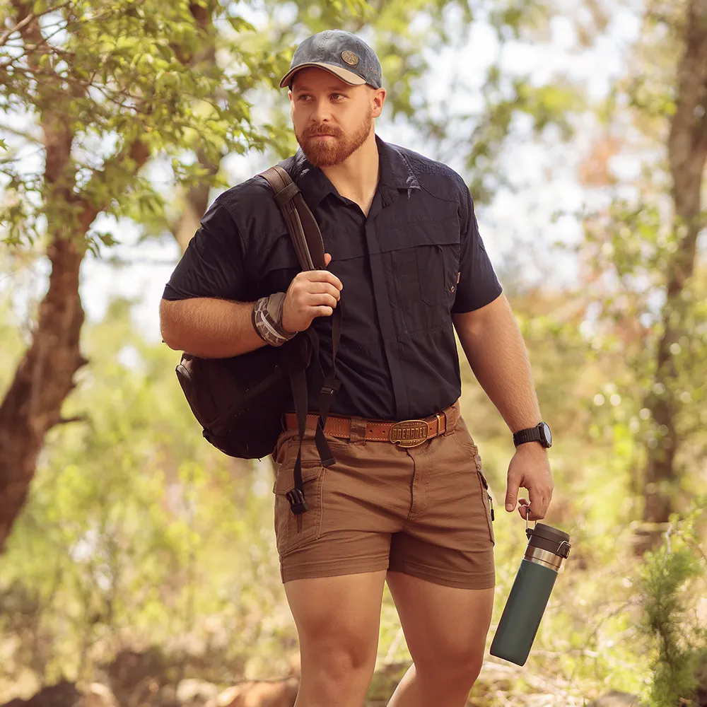 The Boerboel Wear Men’s Odyssey Cargo Shorts in Brown deliver rugged durability and functional versatility in a shorter silhouette. These utility shorts provide the perfect solution for active outdoor adventures and demanding work environments where performance and mobility are essential.