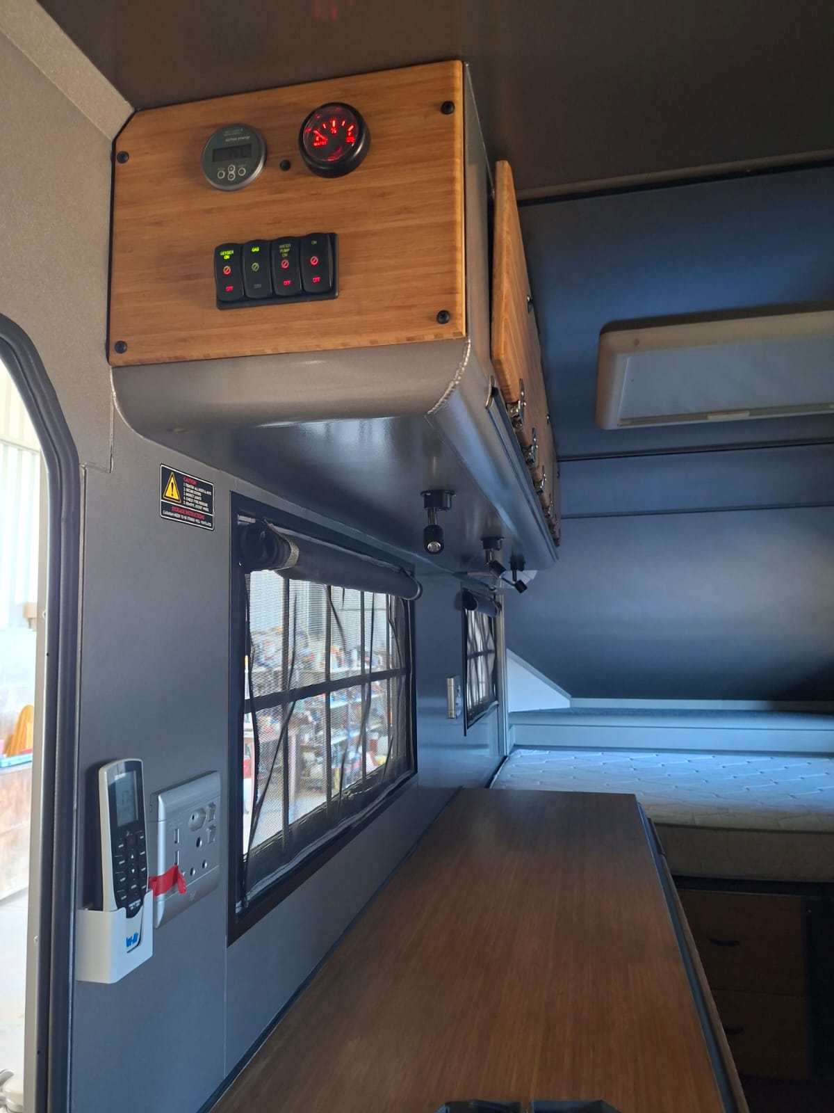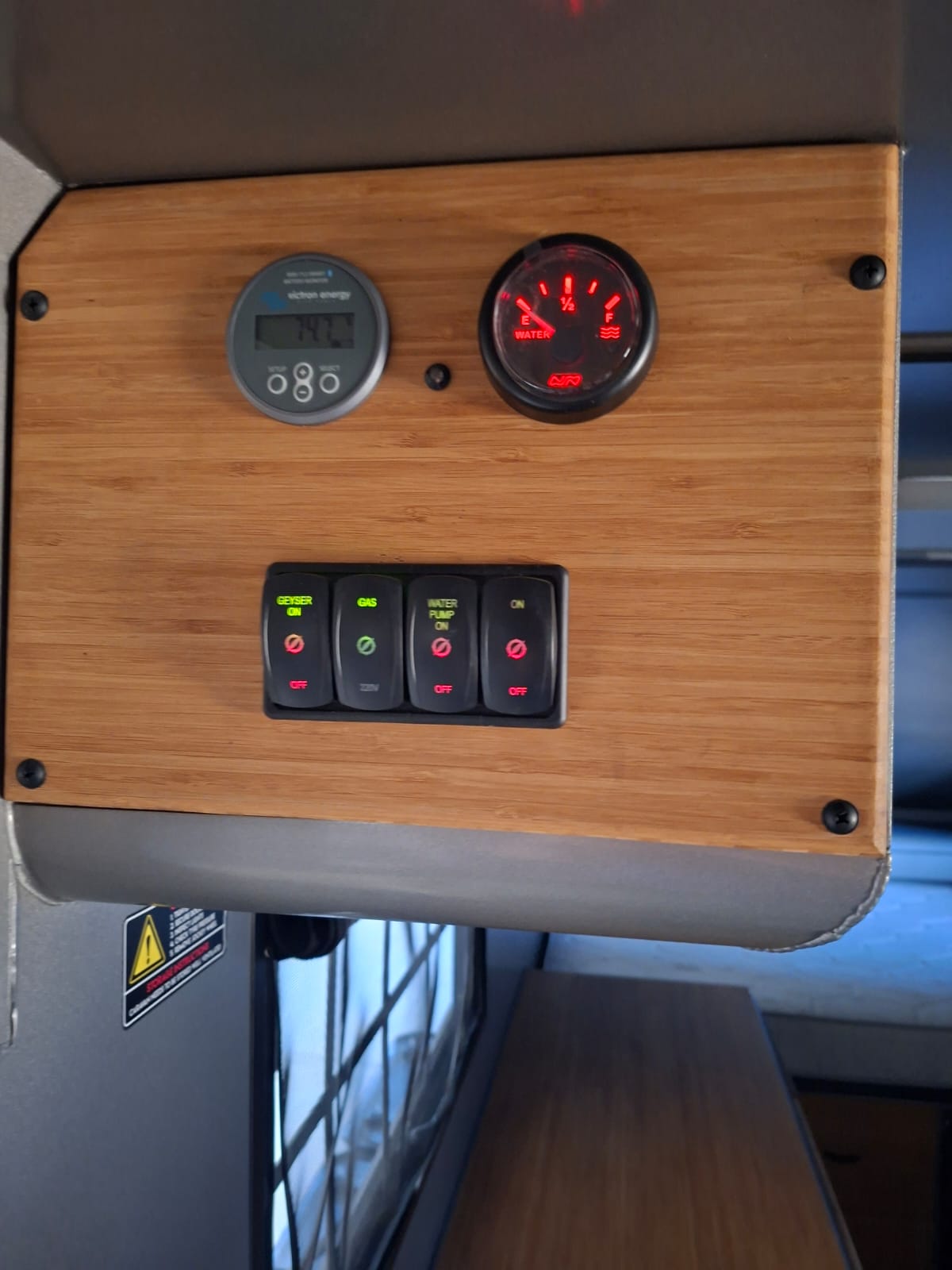 220V electricity with 4 plugs, 15 A Victron charger and battery monitor
