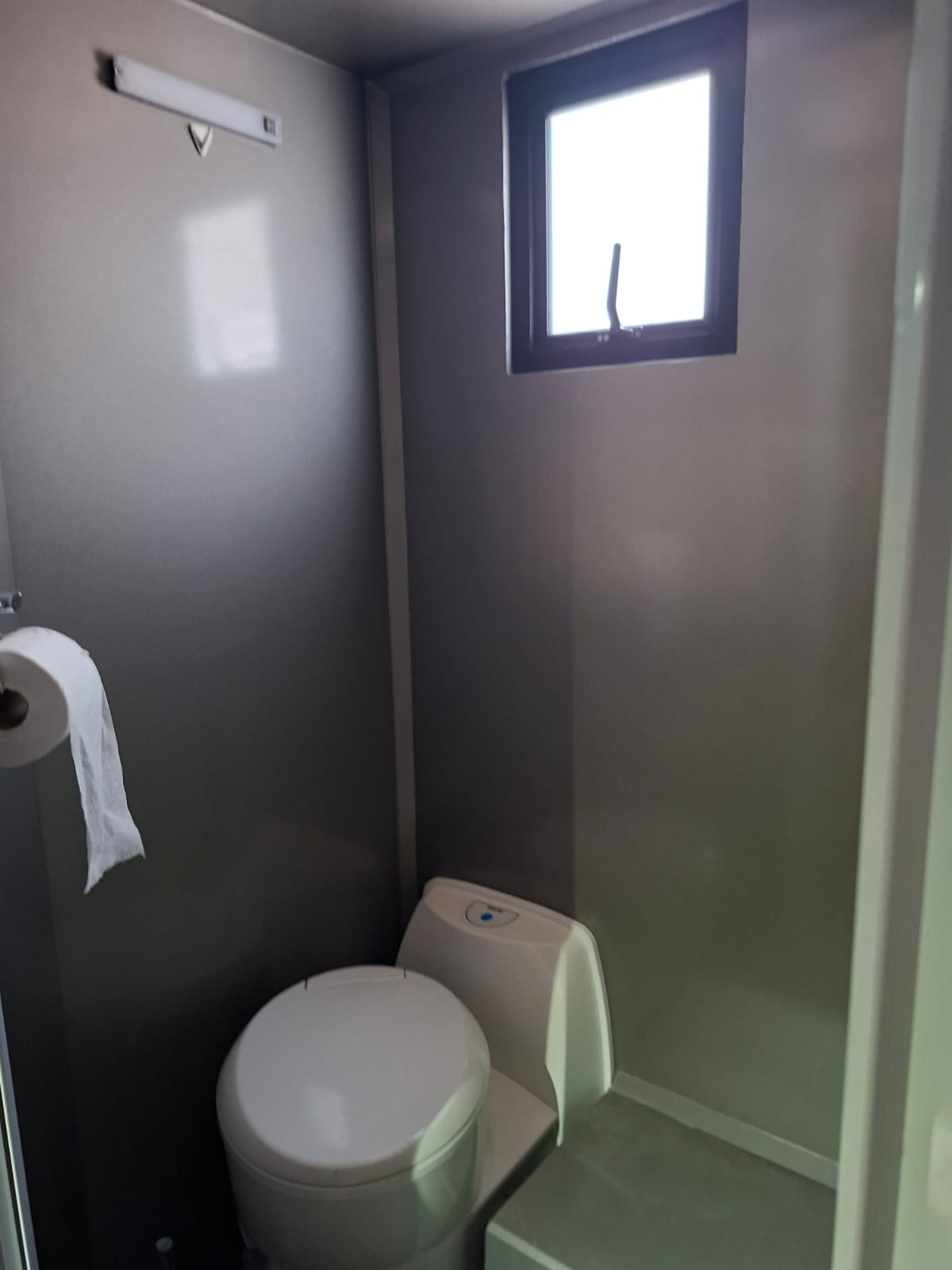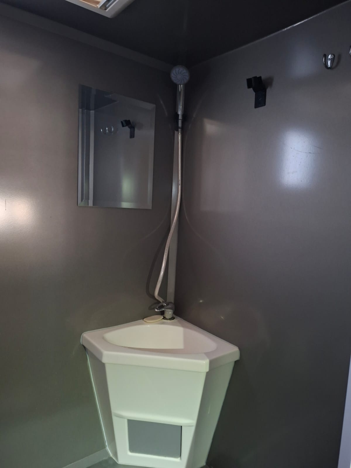 Wet room with basin and shower, window and roof vent