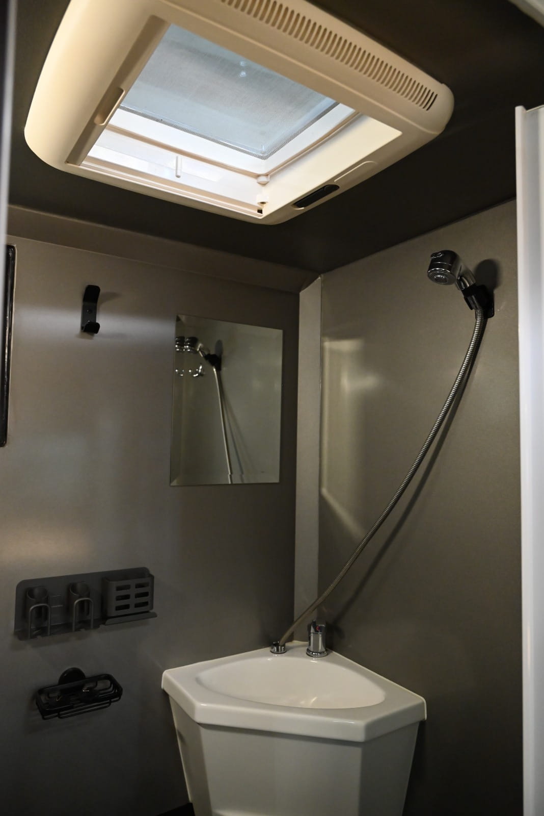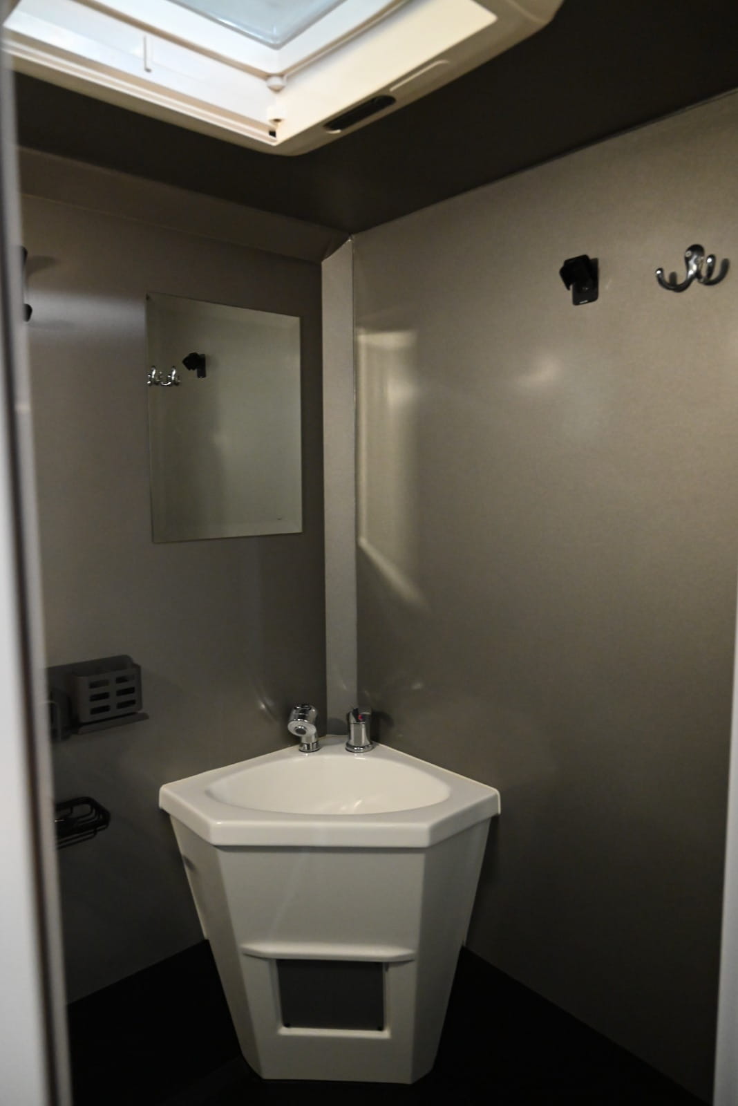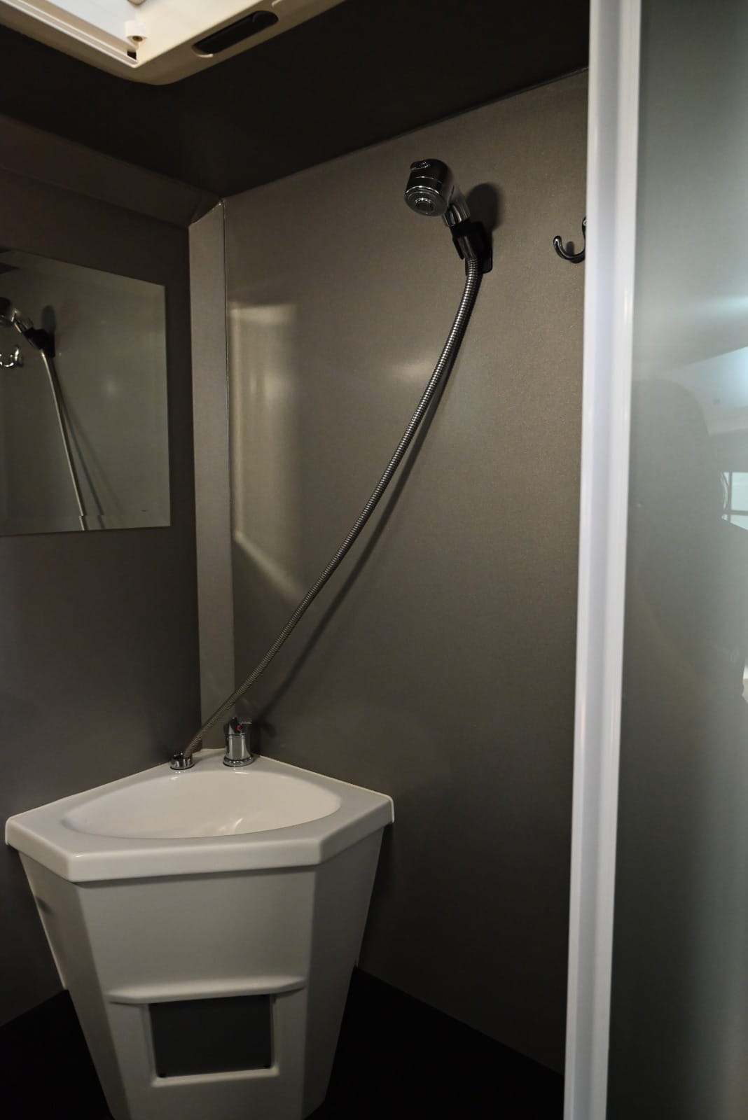 – Wet room with basin and shower, window and roof vent