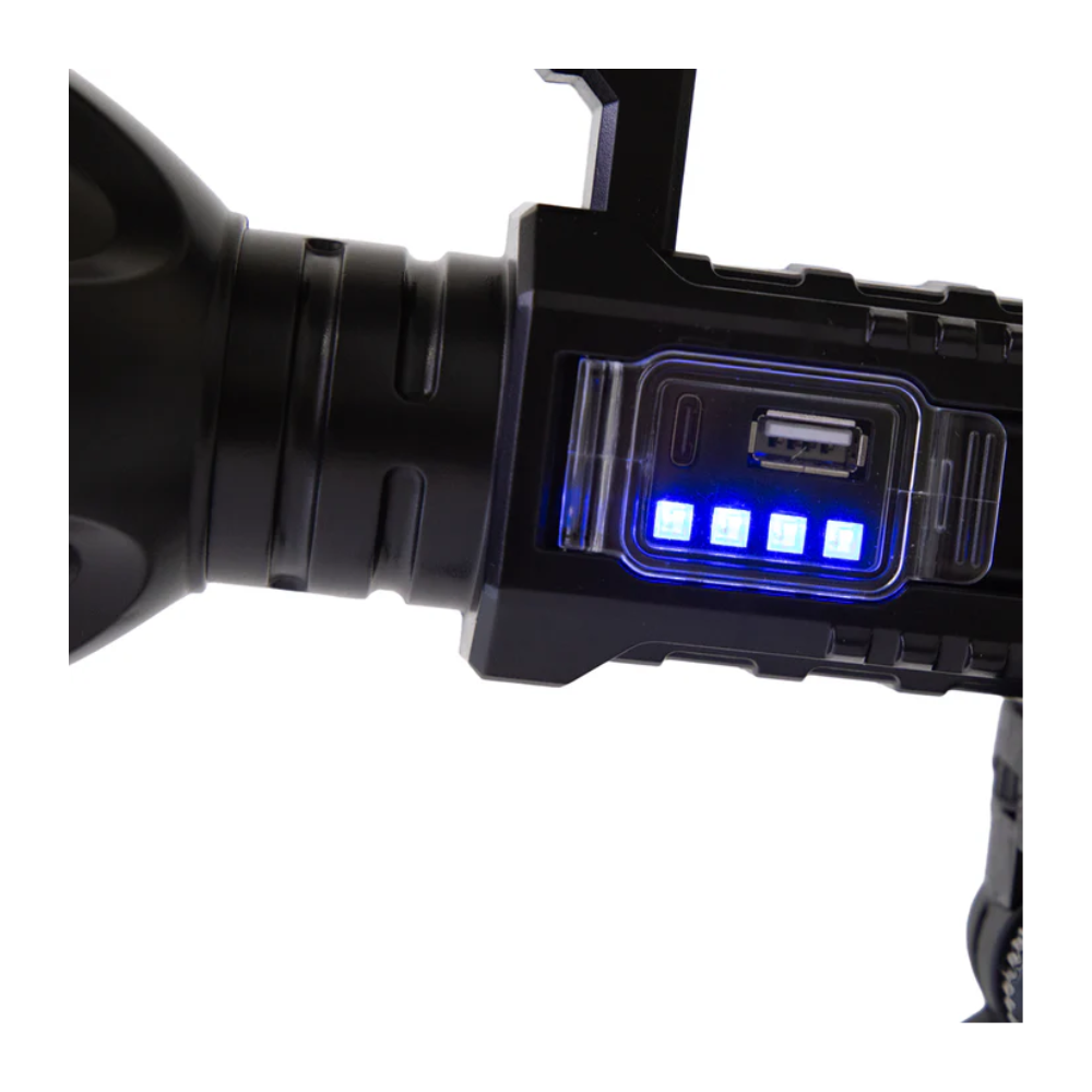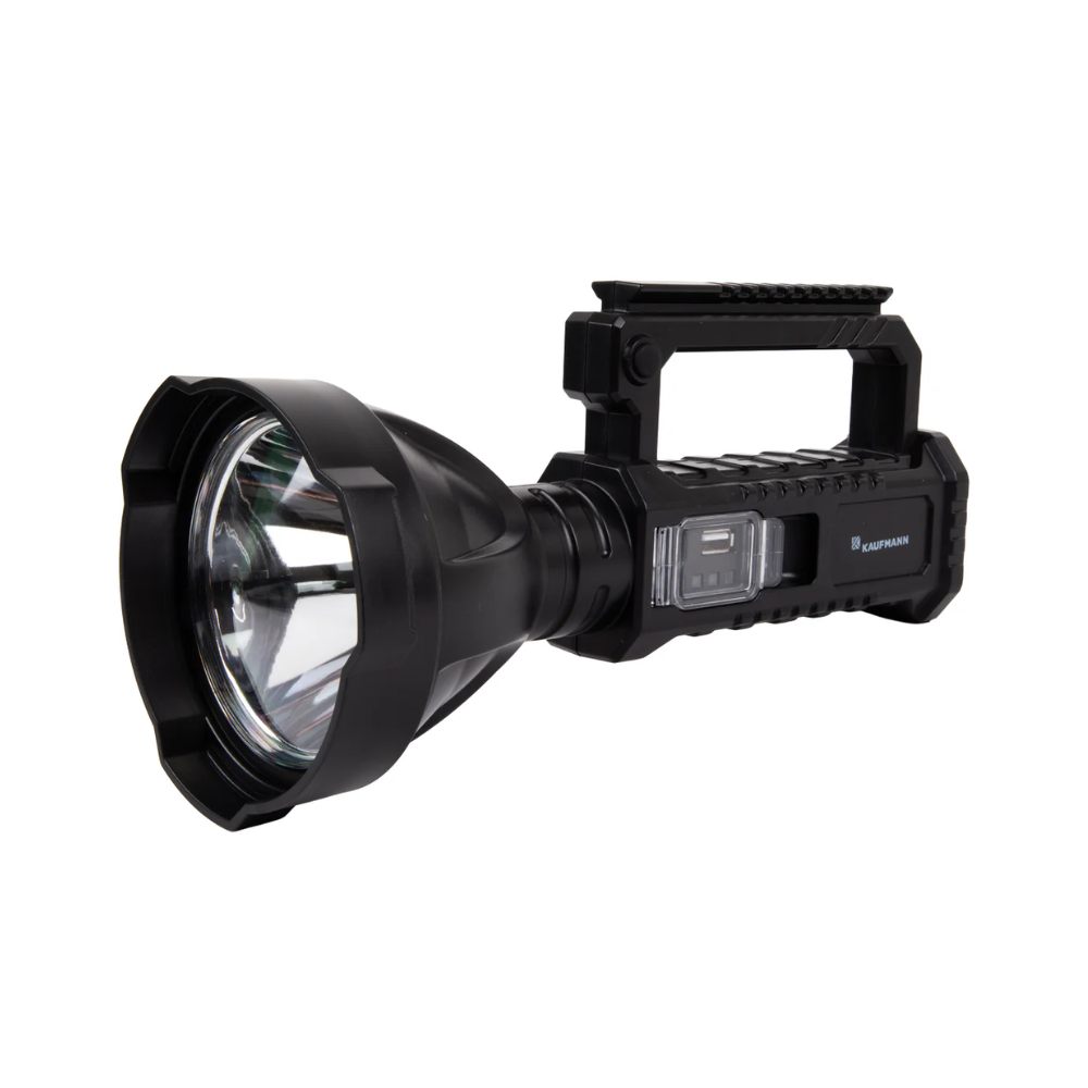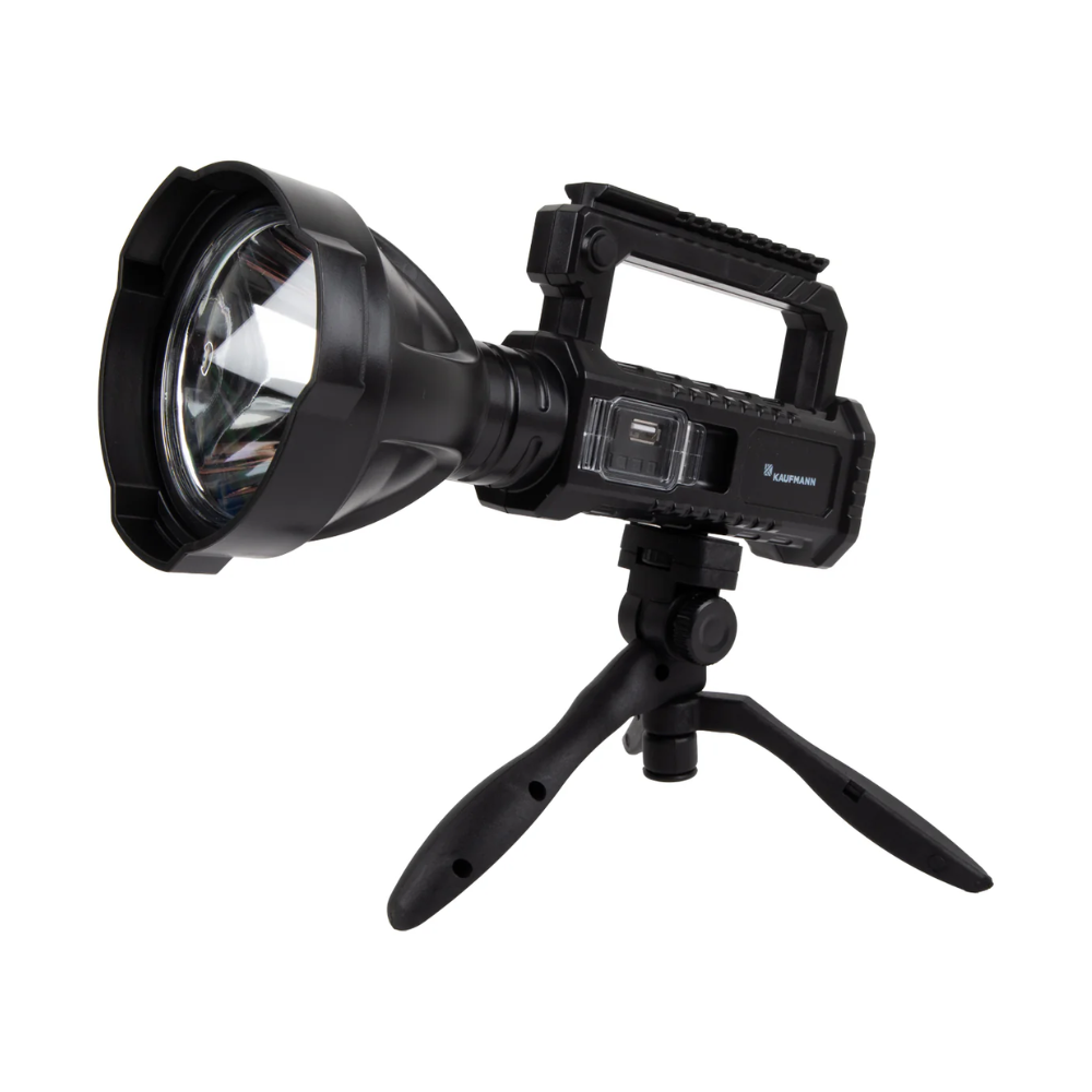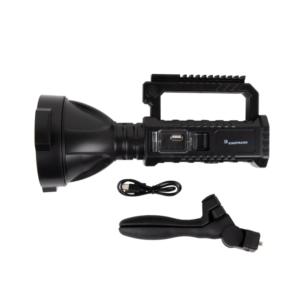 Illuminate your adventures with the Kaufmann Portable LED Spotlight – a versatile lighting solution that delivers professional-grade brightness, hands-free convenience, and smart charging capabilities all in one compact design.