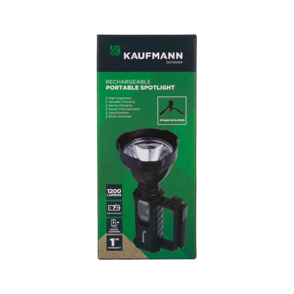 Don’t let darkness slow you down. Add the Kaufmann 1200 Lumen Portable LED Spotlight to your cart today and experience the confidence that comes with powerful, reliable illumination.
