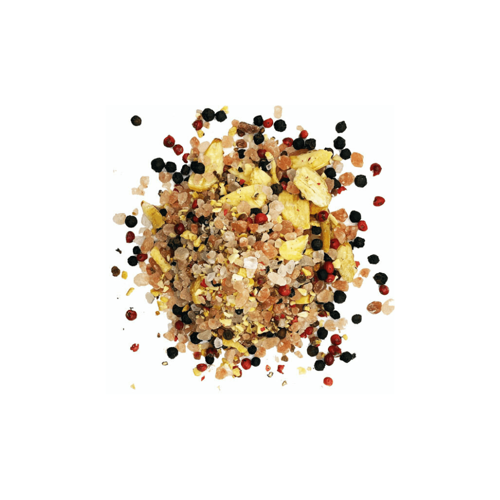 Ingredients: Himalayan Pink Salt, Madagascan Pink & Black Peppercorns, Grade 1 Garlic Granules and Flakes.